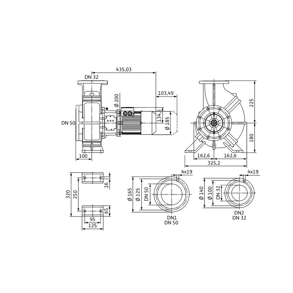 W wersji standardowej silniki w klasie IE3. Pompy z silnikami ≥ 5,5 kW są seryjnie wyposażone w czujniki termistorowe jako zabezpieczenie silnika.