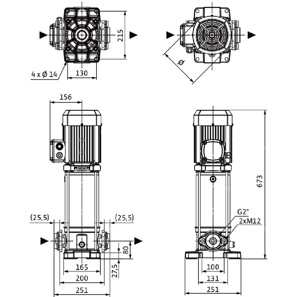 Pompa o kompaktowej konstrukcji z wałem przelotowym silnik-pompa i niezależnym od kierunku obrotów uszczelnieniem mechanicznym. Komory stopni, wirniki i kierownice przepływowe ze stali nierdzewnej. Płyta podstawy pompy z żeliwa z powłoką kataforetyczną z połączeniem kołnierzowym owalnym.