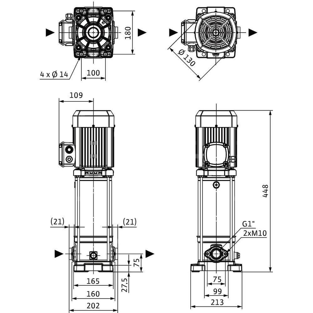 Pompa o kompaktowej konstrukcji z wałem przelotowym silnik-pompa i niezależnym od kierunku obrotów uszczelnieniem mechanicznym. Komory stopni, wirniki i kierownice przepływowe ze stali nierdzewnej. Płyta podstawy pompy z żeliwa z powłoką kataforetyczną z połączeniem kołnierzowym owalnym.