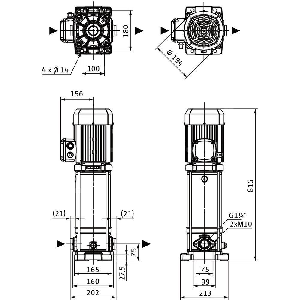Pompa o kompaktowej konstrukcji z wałem przelotowym silnik-pompa i niezależnym od kierunku obrotów uszczelnieniem mechanicznym. Komory stopni, wirniki i kierownice przepływowe ze stali nierdzewnej. Płyta podstawy pompy z żeliwa z powłoką kataforetyczną z połączeniem kołnierzowym owalnym.