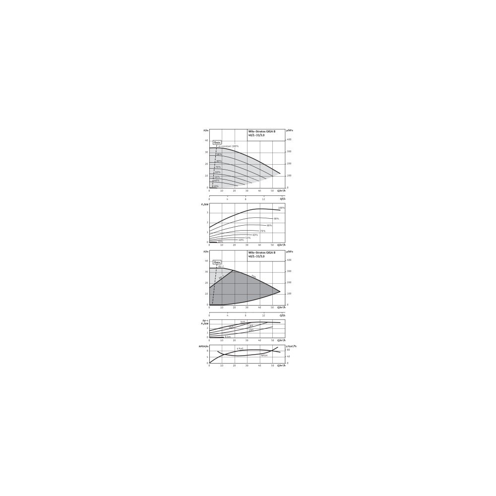 *Uszczelnienie mechaniczne do tłoczenia wody o temperaturze do Tmax. = +140 oC. Do T ≤ +40 oC dopuszczalna jest domieszka glikolu od 20 % do 40 % objętości. W przypadku mieszanin woda/glikol z zawartością glikolu > 40 % max. do 50 % objętości i o temperaturze przetłaczanej cieczy od > +40 oC do max. +120 oC lub mediów innych niż woda należy zastosować alternatywne uszczelnienie mechaniczne.