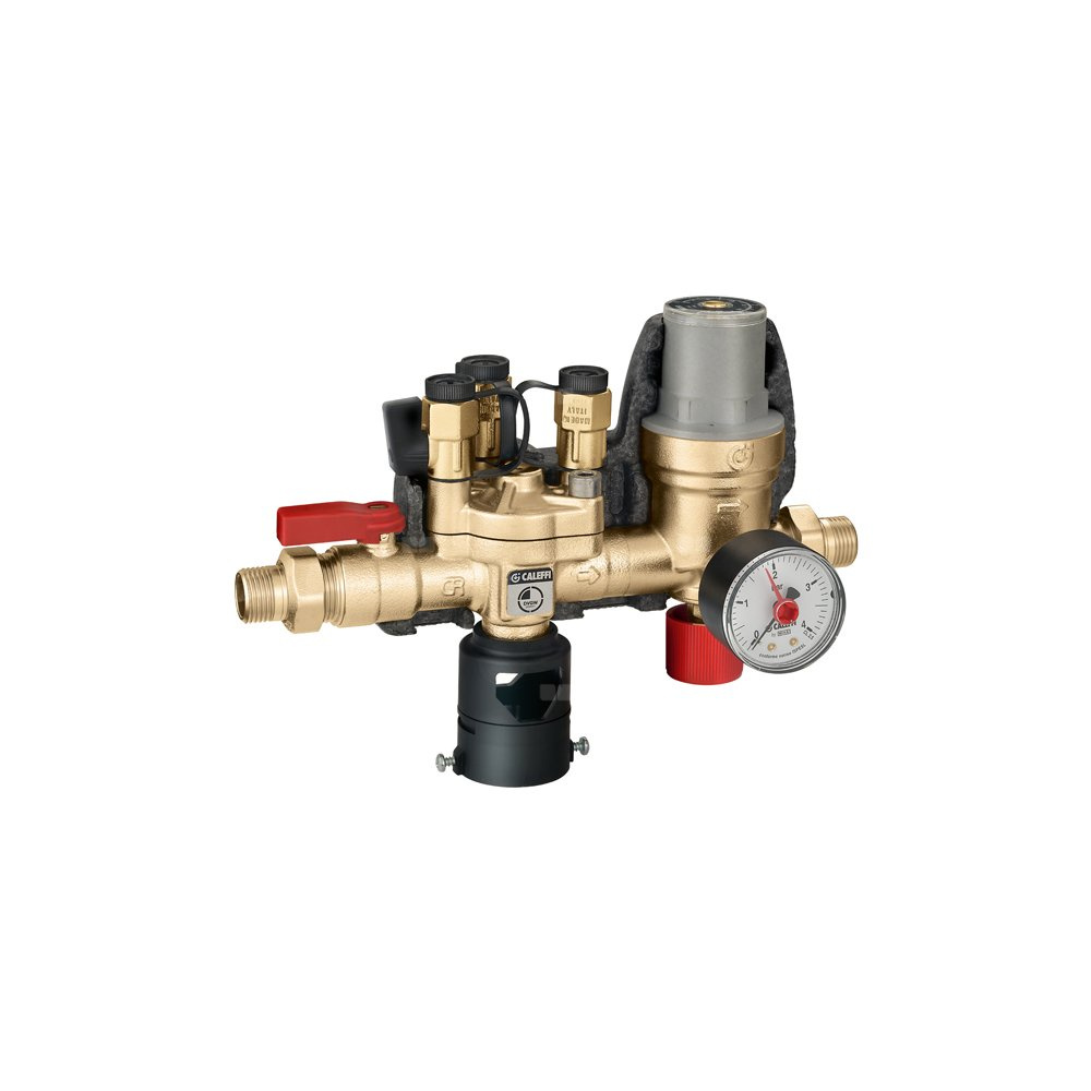 Kompaktowa grupa napełniania instalacji z izolatorem przepływów typu BA , zaworem odcinającym i filtrem siatkowym.