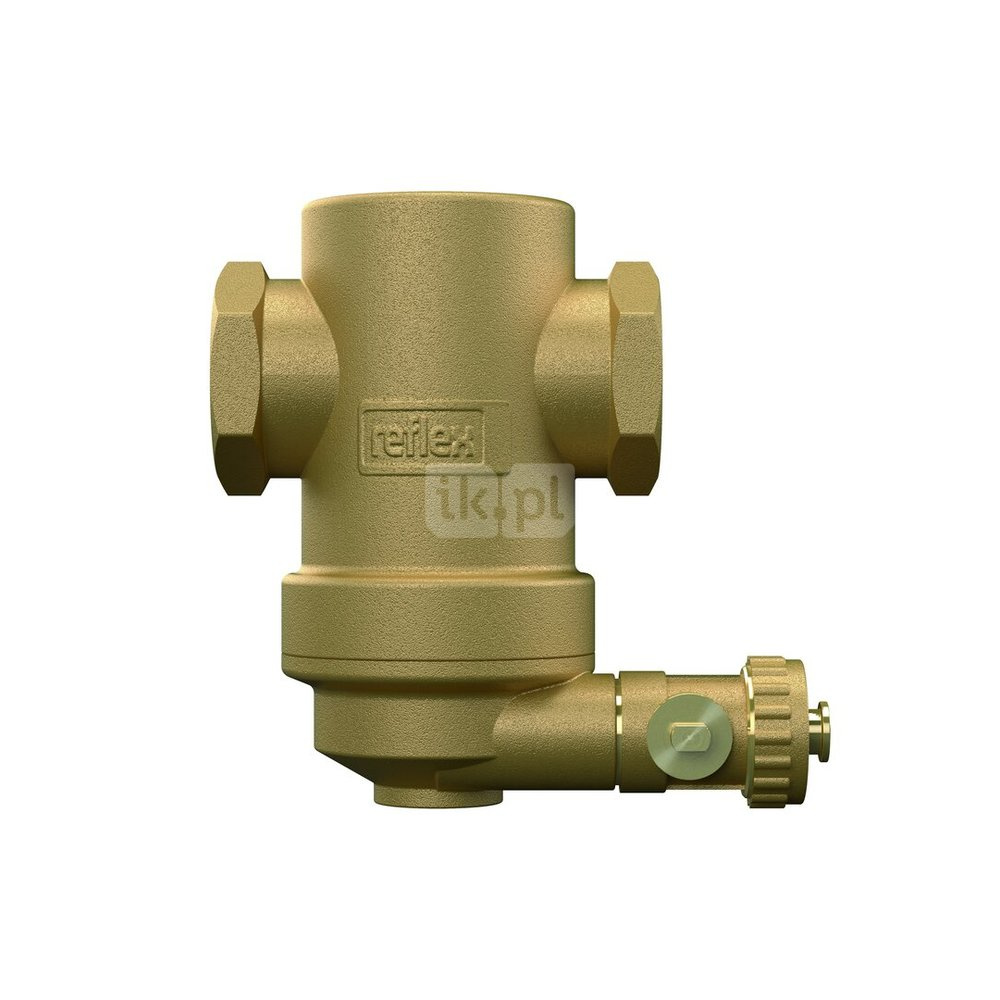 Reflex Exdirt Separator osadów i zanieczyszczeń do instalacji ogrzewania i chłodzenia wodnego oraz innych instalacji zamkniętych wypełnionych cieczą. Zastosowanie do wody oraz mieszaniny wody z glikolem o stosunku do 50/50%. Armatura ze specjalnym wkładem do usuwania ze strumienia cieczy cząstek o wielkości do 5,0 μm. Czyszczenie i opróżnianie komory zanieczyszczeń za pomocą zaworu kulowego bez przerywania pracy instalacji.