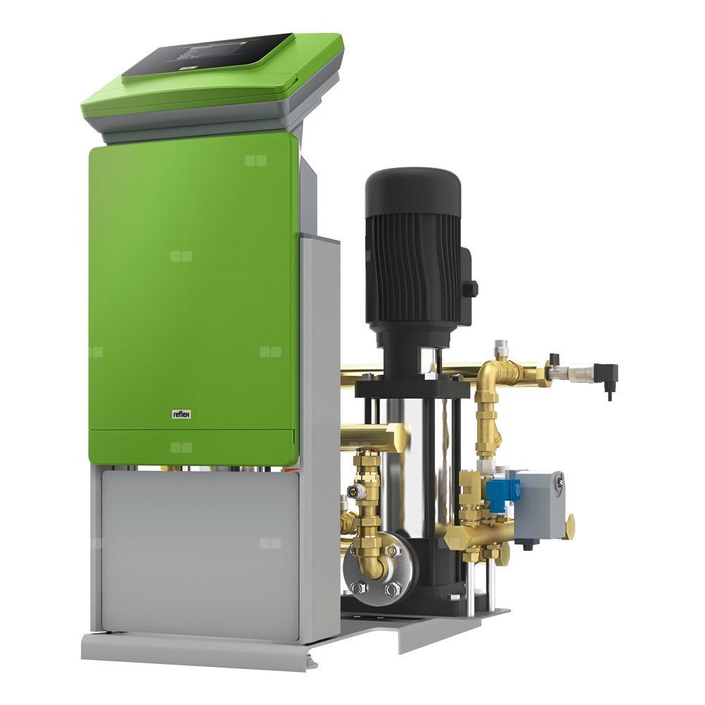 Reflex Variomat, moduł hydrauliczny i sterujący do stabilizacji ciśnienia, odgazowania oraz uzupełniania wody w zamkniętych instalacjach grzewczych i chłodniczych.Konstrukcja urządzenia zgodnie z normą PN-EN 12828 i wymogami VDI 4708, oznaczenie CE.Zastosowanie w miejscach wymagających zachowania niskiego poziomu hałasu.