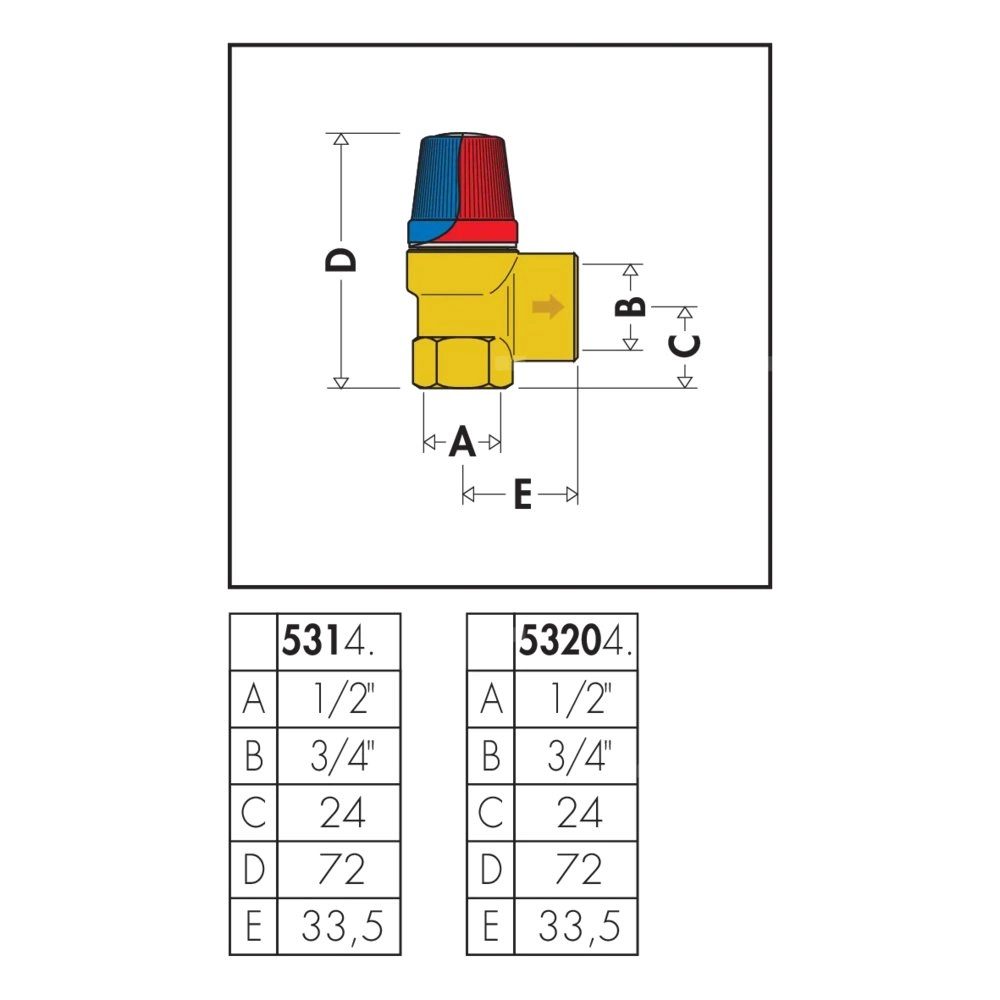 Zawór bezpieczeństwa. Przyłącza z gwintem wewnętrznym 1/2" x 3/4" 2,5 bar