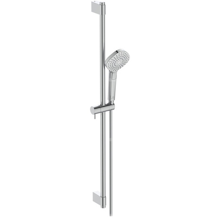 Metalowy drążek prysznicowy długości 900 mm. Regulowane metalowe mocowanie słuchawki. Wąż Idealflex 1750 mm z tworzywa odpornego na osad kamienia. Trzyfunkcyjna słuchawka średnicy Ø 115 mm. Rodzaje strumienia wody: deszcz, deszcz napowietrzony, masaż. Wybór strumienia wygodnym przyciskiem Navigo. Gumowe końcówki dysz zapobiegające osadzaniu się kamienia. Ogranicznik przepływu wody do 8 l/min. Minimalne ciśnienie wody 0,1 bar.