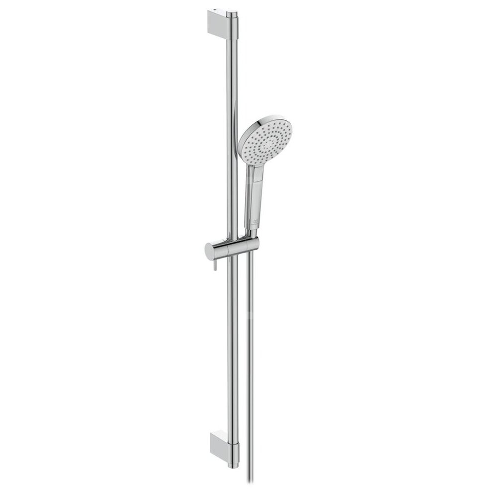 Metalowy drążek prysznicowy długości 900 mm. Regulowane metalowe mocowanie słuchawki. Wąż Idealflex 1750 mm z tworzywa odpornego na osad kamienia. Trzyfunkcyjna słuchawka średnicy Ø 110 mm. Rodzaje strumienia wody: deszcz, deszcz napowietrzony, masaż. Wybór strumienia wygodnym przyciskiem Navigo. Gumowe końcówki dysz zapobiegające osadzaniu się kamienia. Ogranicznik przepływu wody do 8 l/min. Minimalne ciśnienie wody 0,1 bar.
