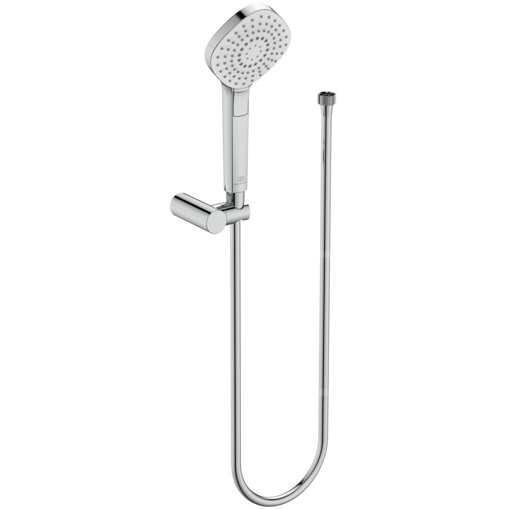 Zestaw natryskowy Evo, okrągła słuchawka prysznicowa, uchwyt ścienny. Trzyfunkcyjna słuchawka Diamond o średnicy Ø 110 mm. Wąż Idealflex 1750 mm. Uchwyt ścienny.