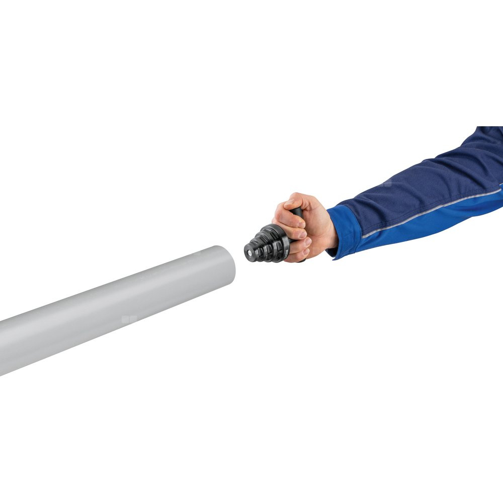 REMS KaliGrat R – jednoczesne kalibrowanie i gratowanie wewnętrzne. Uchwyt grzechotkowy ze stopniowanym trzpieniem kalibrującym ze zintegrowanymi ostrzami gratującymi. Uniwersalny w zastosowaniu do rur zespolonych do kalibracji po procesie cięcia, do gratowania wewnętrznego, aby zapobiec uszkodzeniu o-ringów złączek oraz do gratowania zewnętrznego. Zapewnia łatwą obsługę i szybki posuw dzięki ergonomicznemu uchwytowi z tworzywa sztucznego z funkcją grzechotki. Wytrzymałe wykonanie ze stali trzpienia kalibrującego ze zintegrowanymi ostrzami do gratowania do dużych obciążeń i o dużej żywotności. Stopniowany trzpień kalibrujący i ostrza do gratowania są przeznaczone do rur o różnych średnicach i grubościach ścianki.