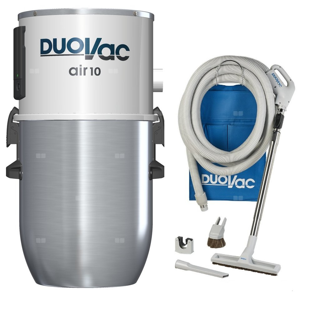 Odkurzacz centralny Duovac Air10 przeznaczony jest do domów o max. powierzchni ok 250m² wraz z instalacją składającą się z max. 7 punktów ssących. Mimo swoich kompaktowych wymiarów posiad duży, lekki i wygodny zbiornik na zanieczyszczenia oraz niezawodny silnik zapewniający optymalną siłę ssania podczas całego okresu użytkowania. Silnik został wyposażony w system łagodne uruchamiania SOFT-START, dzięki czemu wydłuża się jego żywotność.