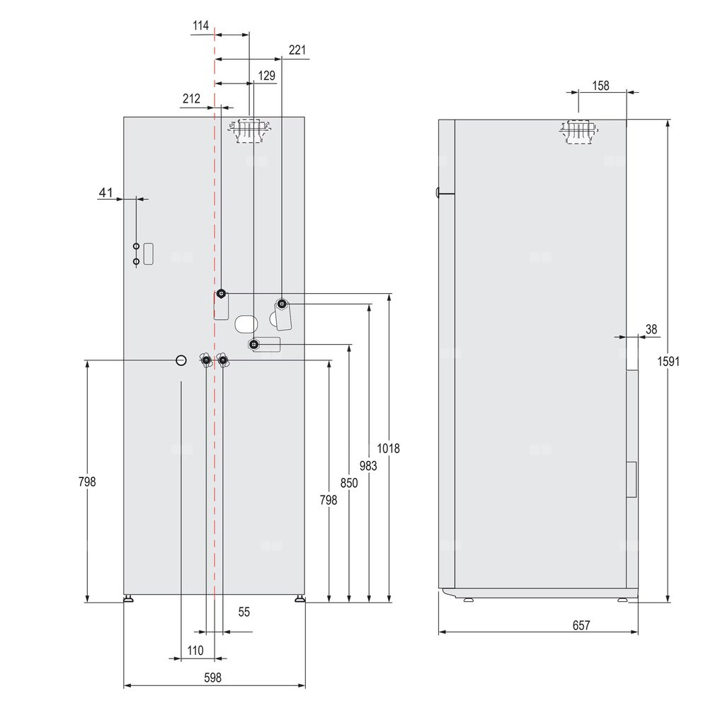 Kocioł kompaktowy: kocioł + kolano < 1,8 m do montażu w piwnicy