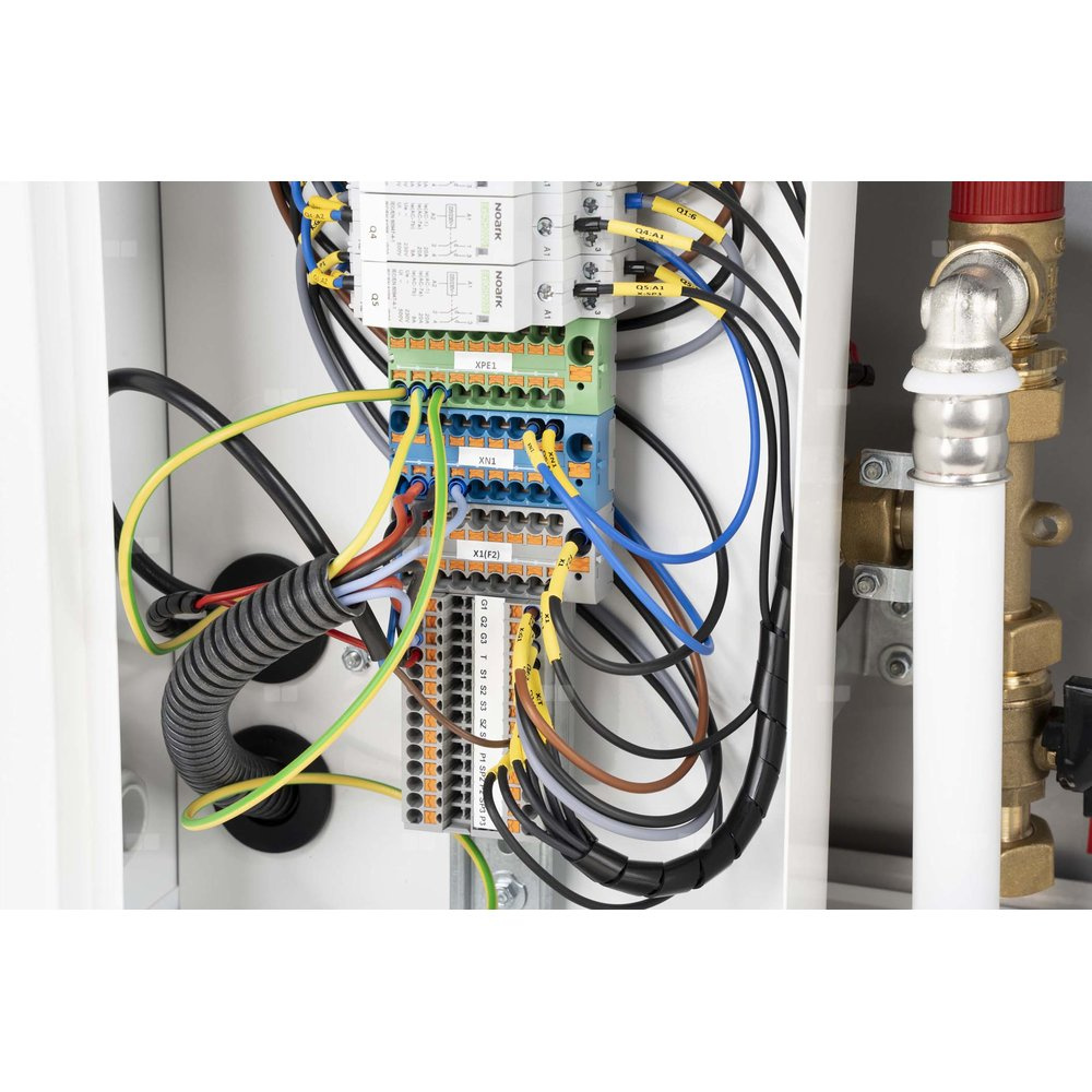 Wyposażony w grzałkę przepływową o mocy 6 kW, która umożliwia dogrzewanie w zależności od zapotrzebowania, po otrzymaniu odpowiedniego sygnału z pompy ciepła.