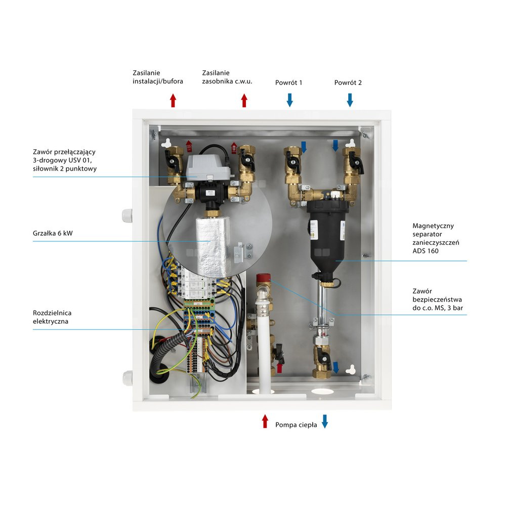 Moduł hydrauliczny do pomp ciepła AMB 760, z grzałką przepływową 6 kW, zaworem przełączającym USV, separatorem zanieczyszczeń ADS 160, przyłącza G1''