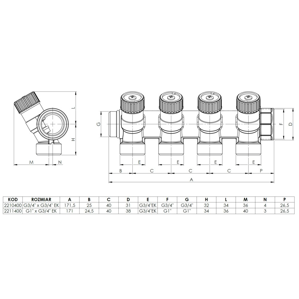 Montowany do istniejącego rozdzielacza w szafce rozdzielacza.