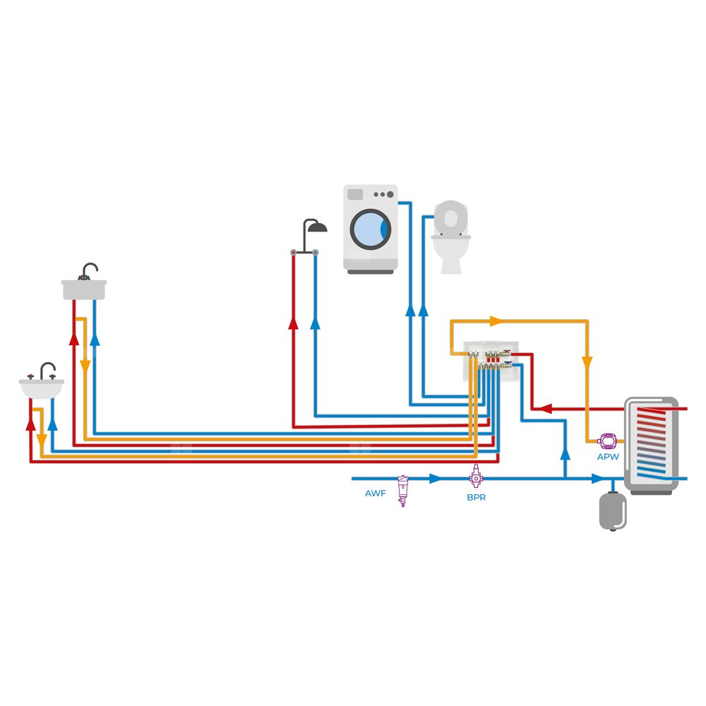 Zawory odcinające umożliwiają niezależne odcięcie przepływu do danego punktu poboru.