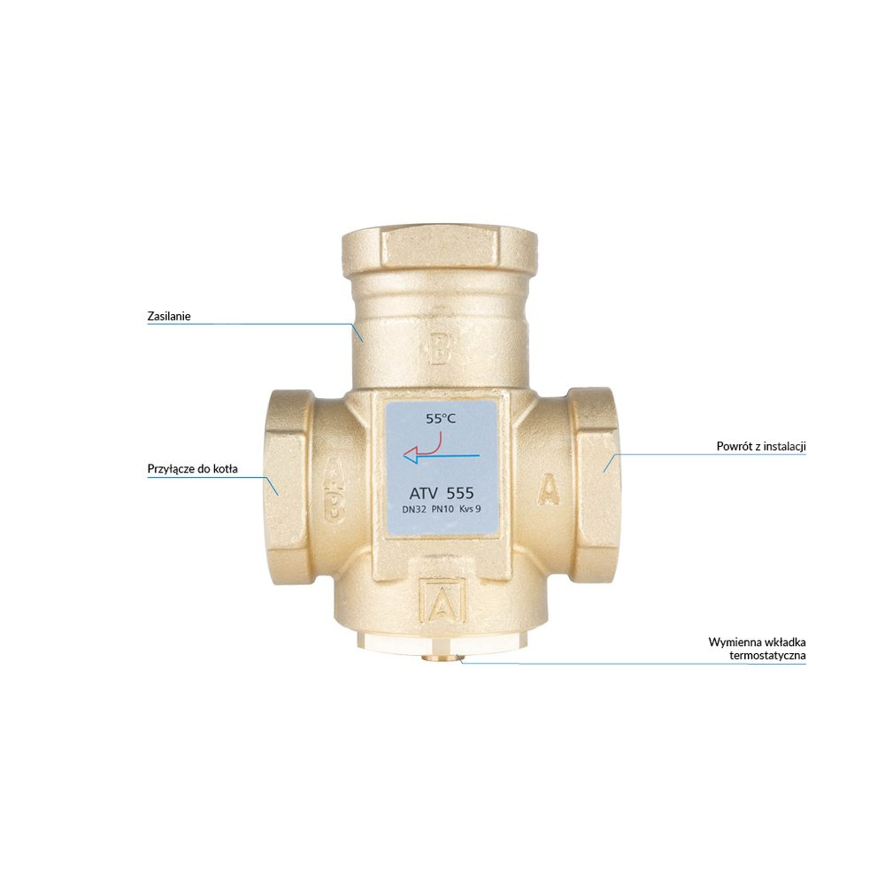 Stosowany w instalacjach grzewczych z kotłami stałopalnymi, zalecany szczególnie do instalacji z buforami ciepła.Montowany na powrocie z instalacji.