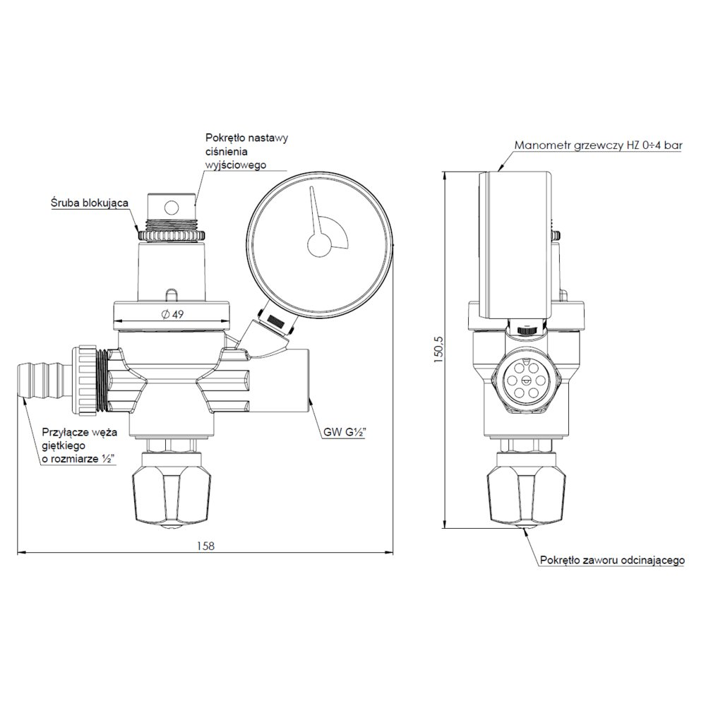Ze wskaźnikiem ciśnienia / manometrem