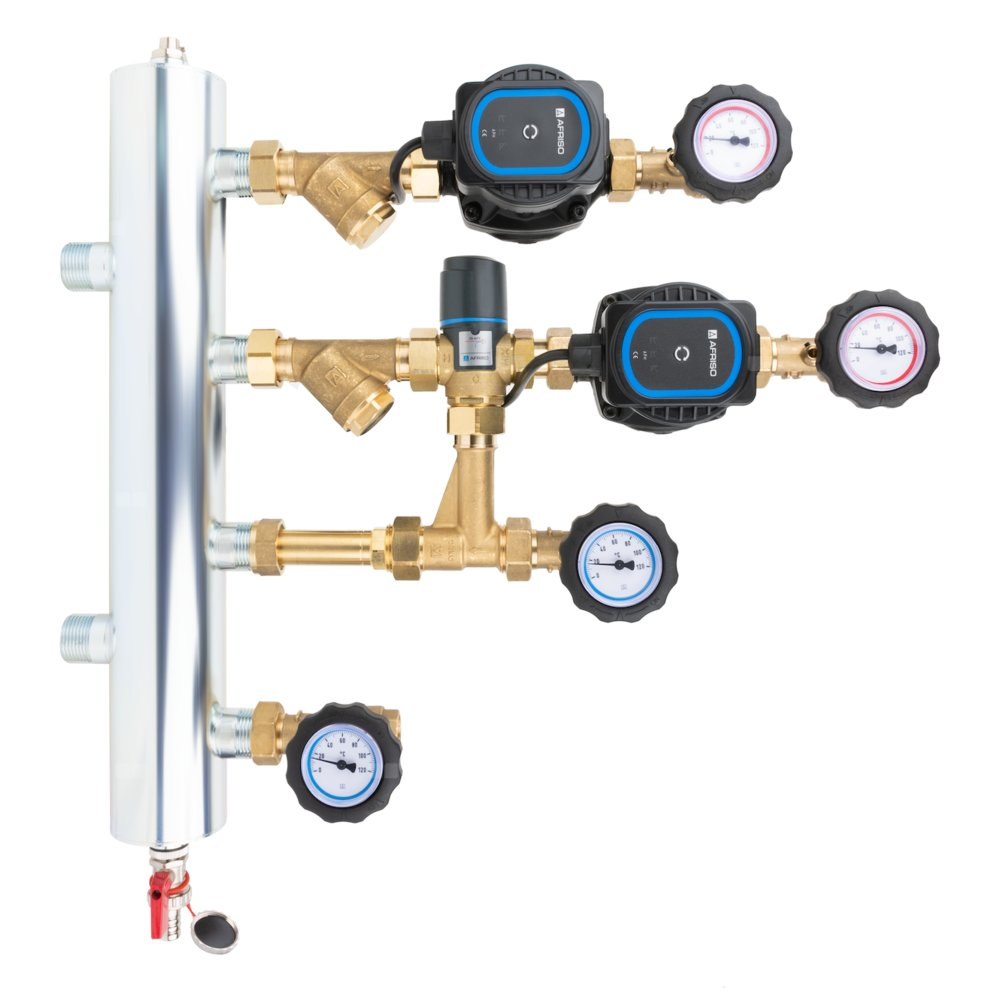 Grupa pompowa AFRISO BPS 901 AP GZ x GW 1'' x 3/4'', z zaworem termostatycznym, z pompą obiegową AFRISO APH 160 15-7/130 mm
