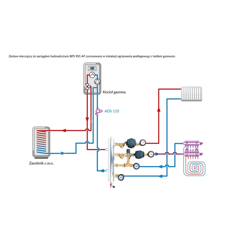 Stosowany w instalacjach grzewczych i chłodzących.Montowany na ścianie między źródłem a instalacją.