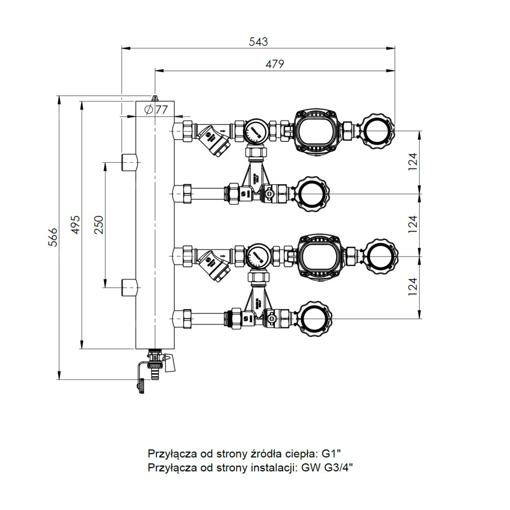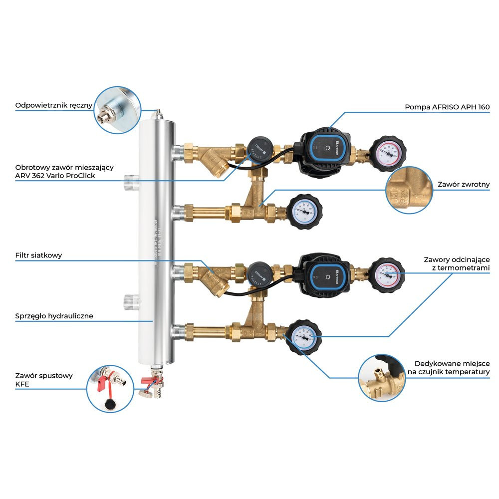 Pozwala na przyłączenie dwóch obiegów grzewczych/chłodzących.