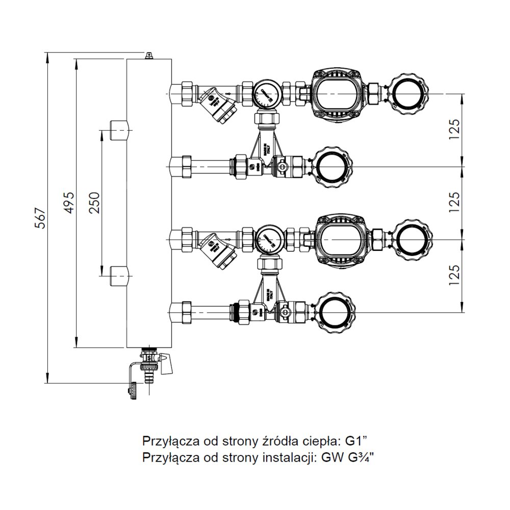 Stosowany w instalacjach grzewczych i chłodzących.Montowany na ścianie między źródłem a instalacją.