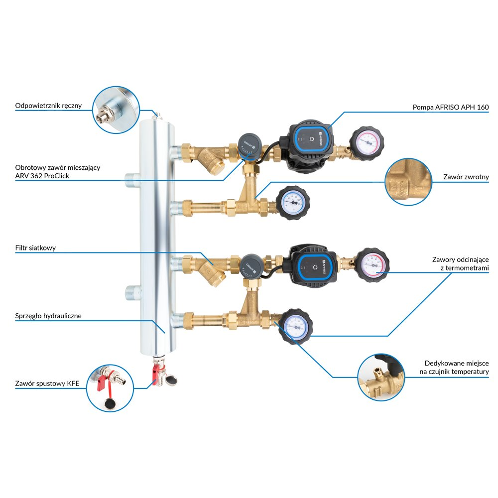 Grupa pompowa AFRISO BPS 966 AP GZ x GW 1'' x 3/4'', z zaworem mieszającym, z pompą obiegową AFRISO APH 160 15-7/130 mm
