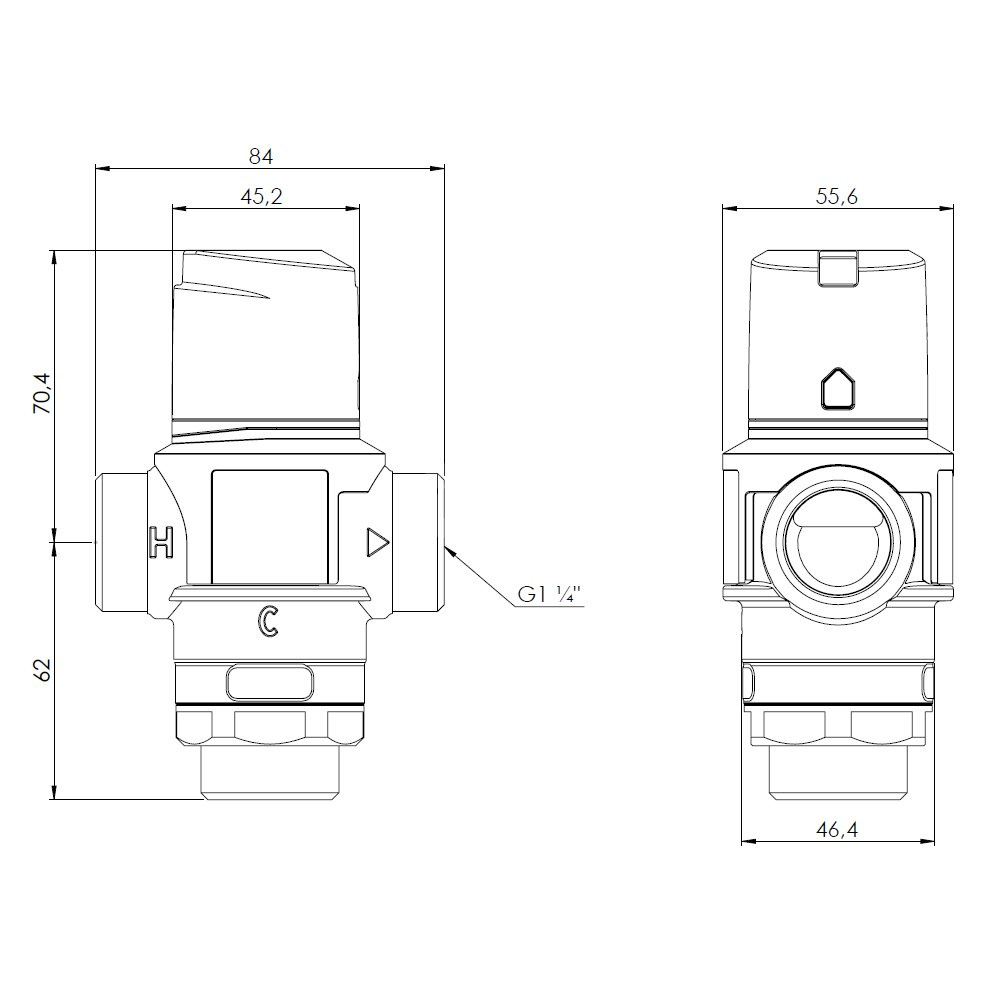 Zawór regulacyjny termostatyczny do wody ciepłej AFRISO ATM 883 mosiądz GZ 1 1/4'', DN 25, zakres temp. 35...60'C, Kvs 4.2m3/h, max. 110'C, max. 10bar