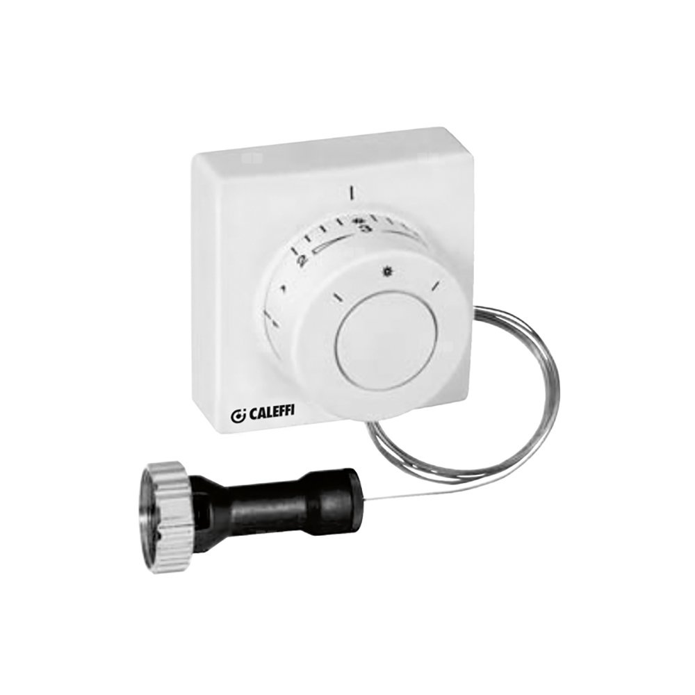 Głowica termostatyczna z pokrętłem do zdalnej regulacji, z czujnikiem cieczowym Zakres regulacji temperatury: 6–28 °C. Długość przewodu/ kapilary: 2 m.