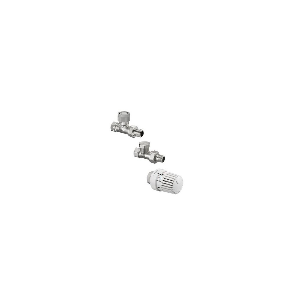 Zestaw grzejnikowy z termostatem Uni LH, zaworem termostatycznym AQ z funkcją automatycznego równoważenia i powrotnym Combi 2, DN 10, prosty