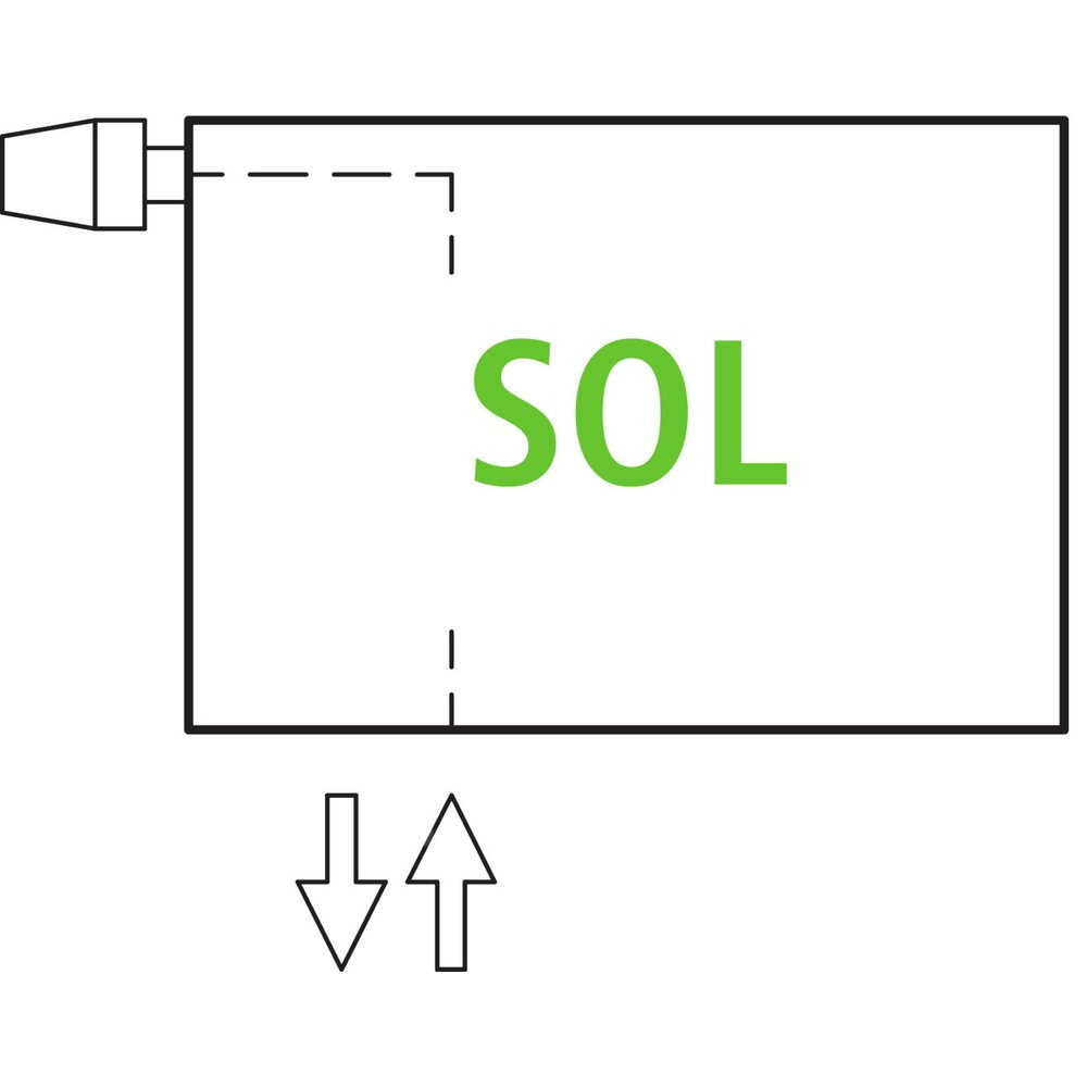 Pionowe, smukłe wykonanie – estetycznie wykończone za pomocą standardowo montowanej bocznej osłony lub idealne dostosowanie w wersji poziomej – z elegancką osłoną lub bez.
