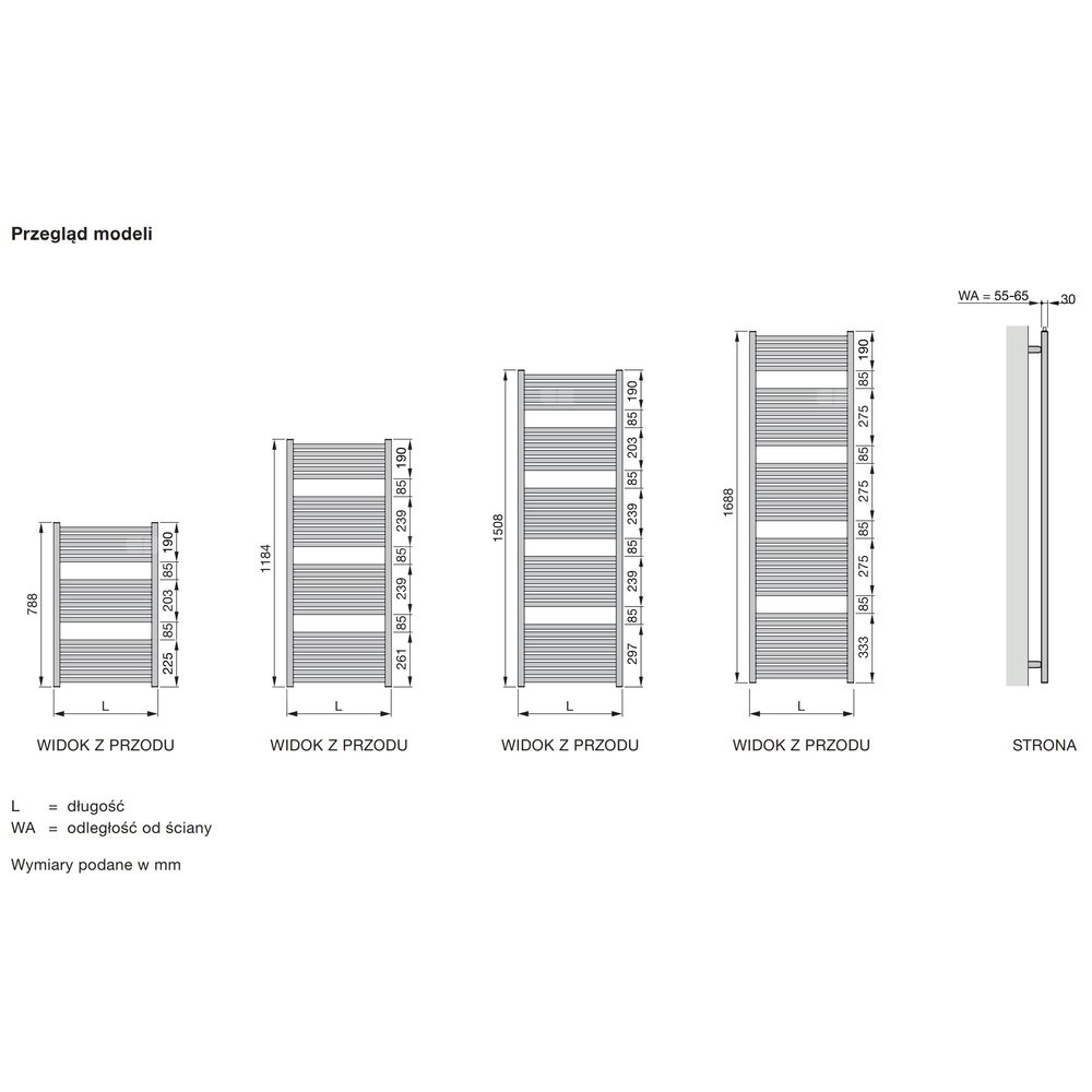 Duże odległości między rurkami pozwalają na wygodne zawieszanie ręczników,