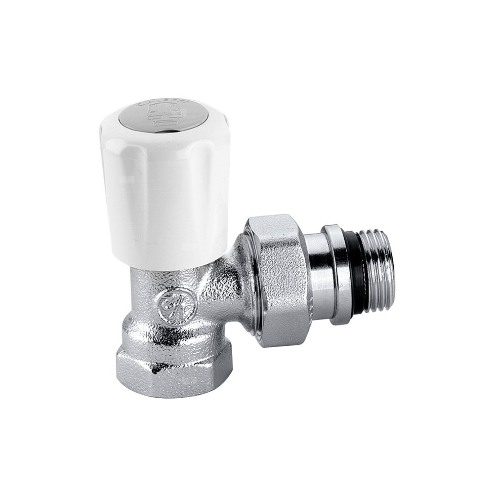 Kątowy grzejnikowy zawór termostatyczny z pokrętłem, przystosowany do montażu głowic termostatycznych, elektronicznych i siłowników termoelektrycznych Do rury żelaznej. podłącznie rury: G 3/8" (ISO 228-1) GW, wlot, podłączenie kątowe. podłączenie grzejnika: G 3/8" A (ISO 228-1) GZ, wylot, podłączenie kątowe. Maksymalne ciśnienie pracy: 10 bar. Zakres temperatury medium: 5–100 °C. Wykończenie: chromowane. Kv: 2,22 m³/h. Materiał: mosiądz.