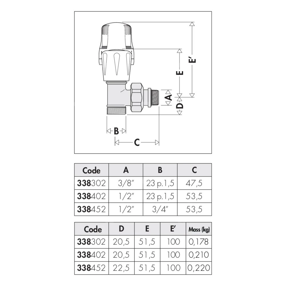 Kątowy zawór termostatyczny z pokrętłem przystosowany