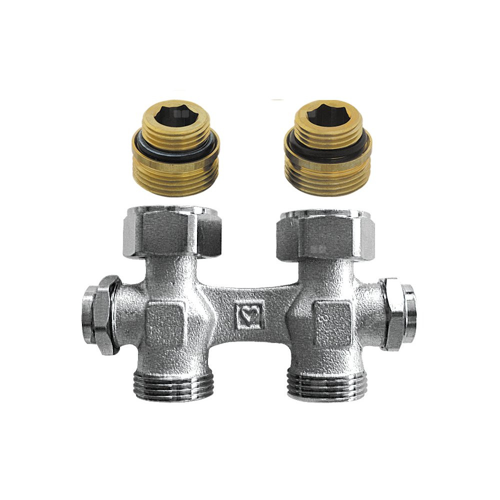 Moduł przyłączeniowy prosty HERZ 3000 (3466) nyple mosiądz (niklowanie) 1/2'' x 3/4'', rozstaw 50 mm do grzejników