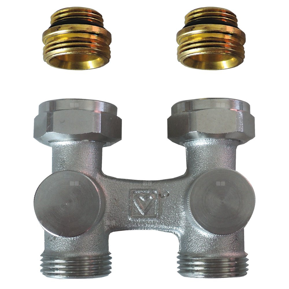 Moduł przyłączeniowy prosty HERZ 3000 (3766) nyple mosiądz (niklowanie) 1/2'' x 3/4'', rozstaw 50 mm do grzejników