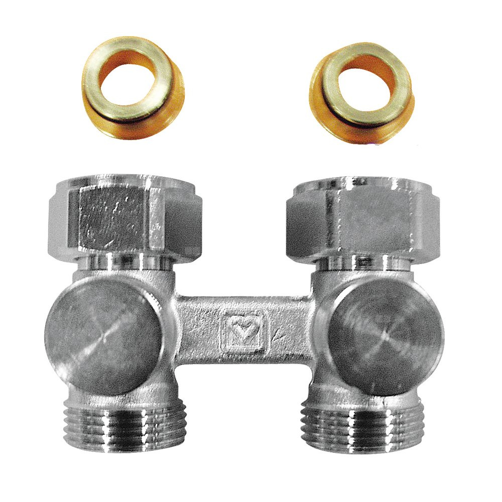 Moduł przyłączeniowy prosty HERZ 3000 (3766) RL-1 mosiądz (niklowanie) 3/4'' x 3/4'', rozstaw 50 mm do grzejników