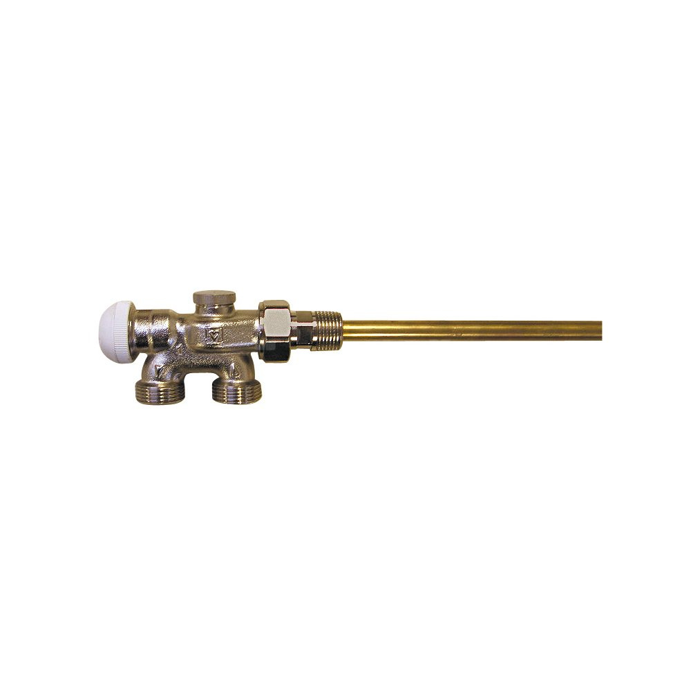 HERZ-VTA-40- zawór czterodrogowy do instalacji jednorurowych. Przyłącze grzejnika dolno-boczne, z uszczelnieniem płaskim, rurka nurnikowa 1 = 290, 0 = 11 mm. Rozstaw rur 40 mm. Częściowe ograniczenie przepływu przy pracy termostatycznej, możliwość demontażu grzejnika oraz wymiany wkładki termostatycznej pod ciśnieniem za pomocą klucza HERZ-Changefix. Przyłącze do rur G 3/4 ze stożkiem. Złącza zaciskowe oraz wkładka cyrkulacyjna 1 6222 01 oddzielnie do zamówienia.