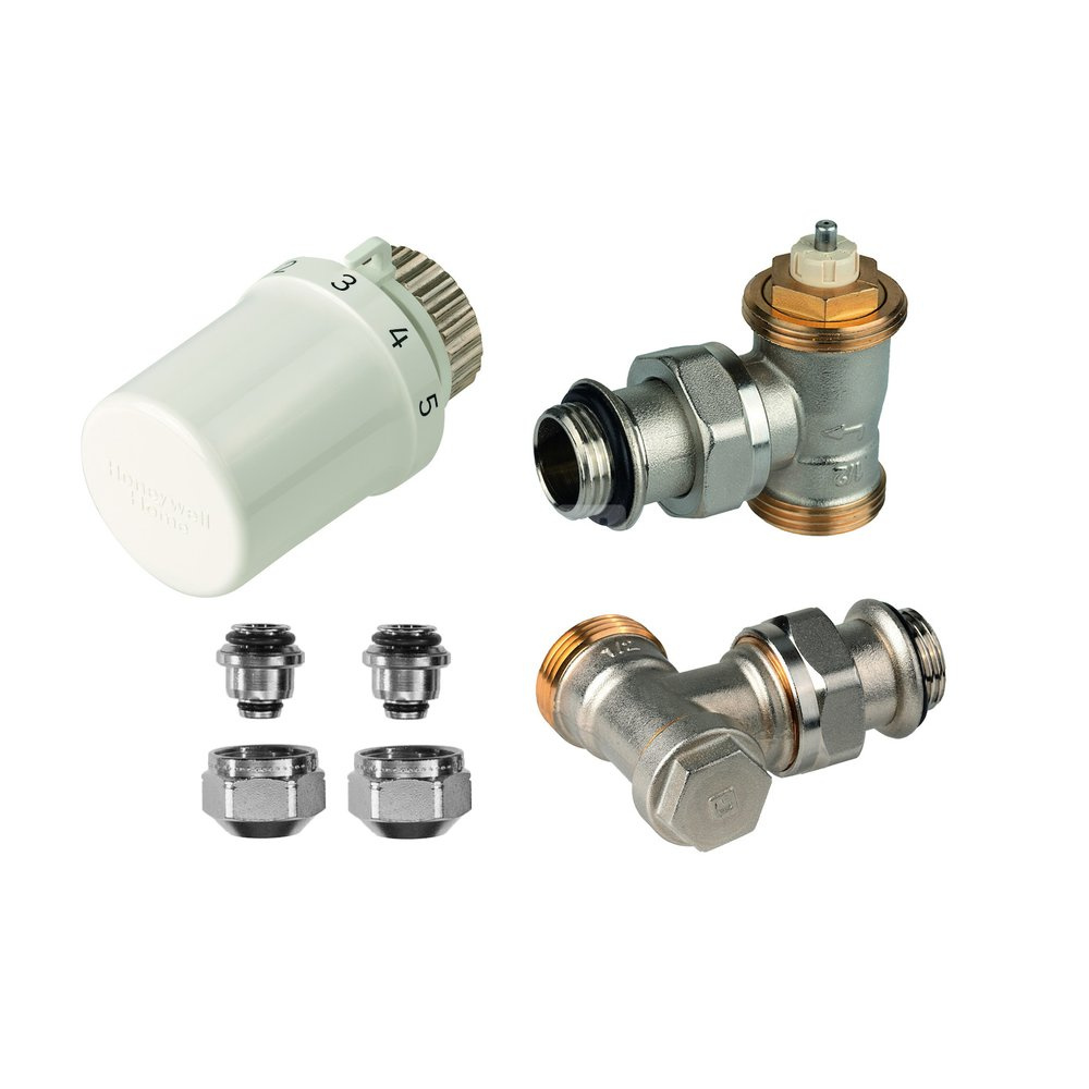 Zestaw do grzejników bocznozasilanych: głowica Thera-6 T3019+ Zawór termostatyczny, kątowy, wkładka SX, G3/4" V2036ESX15 (GZ/ złączka do grzejnika uszcz. miękkie) + zawór powrotny, kątowy, 1/2", V2437E0015 + złączka do rur wielowarstwowych OT113M-3/4F