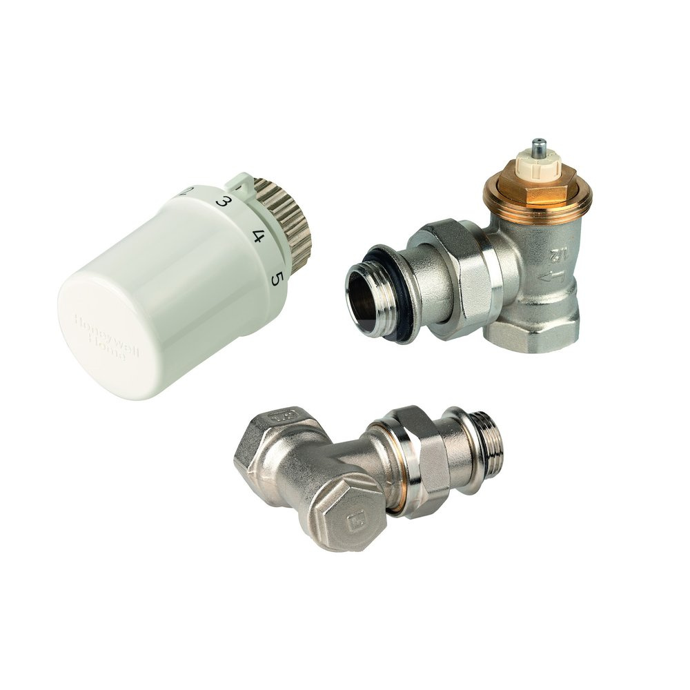 Zestaw do grzejników bocznozasilanych: głowica Thera-6 T3019W0 + Zawór termostatyczny, kątowy, wkładka SX, 3/8" V2030ESX10 (złączka do grzejnika uszcz. miękkie) + zawór powrotny, kątowy, 3/8", V2430E0010