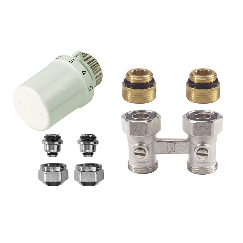 Zestaw do grzejników dolnozasilanych: głowica Thera-6 T3019W0 + zawór Verafix VK, prosty, 1/2" V2496DY015 + złączka do rur wielowarstwowych OT113M-3/4F
