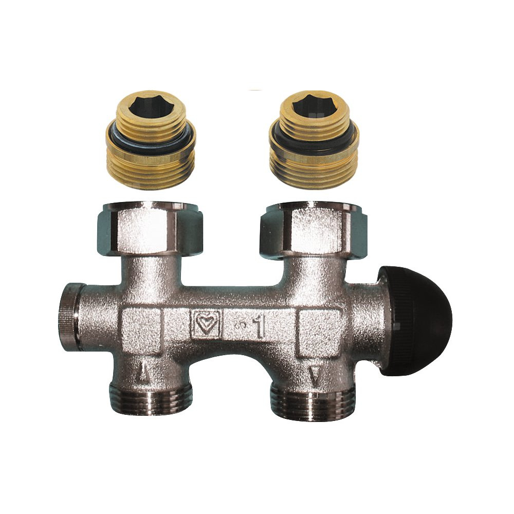 Zestaw przyłączeniowy grzejnikowy jednorurowy HERZ TS-3000 (3798) 1/2'' x 3/4'', rozstaw 50 mm, zawór prosty przystosowany termostatycznie