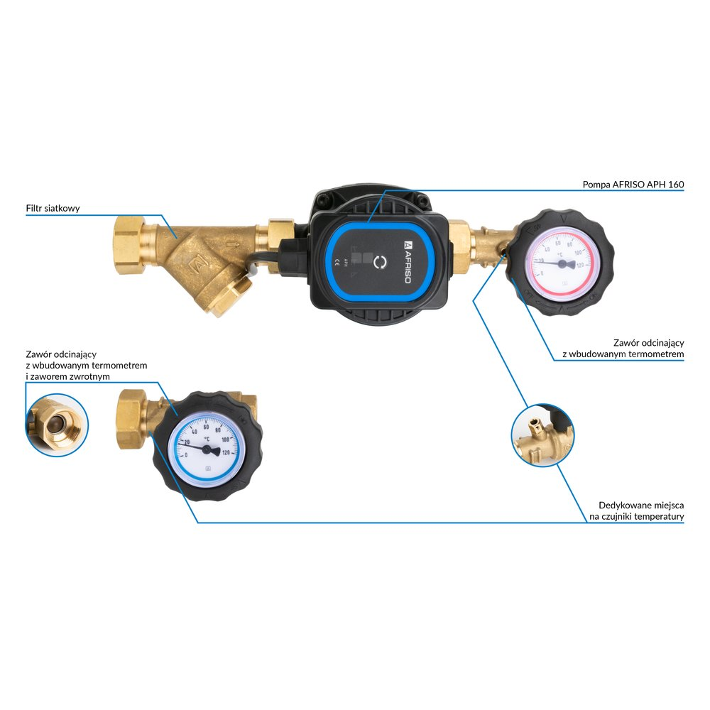 Grupa pompowa AFRISO BPS 990 AP nakrętka x GW 1'' x 3/4'', z pompą obiegową AFRISO APH 160 15-7/130 mm
