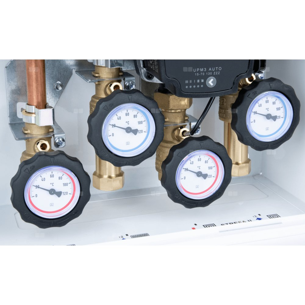 Tworzy dwie strefy ogrzewania o różnych temperaturach zasilania.