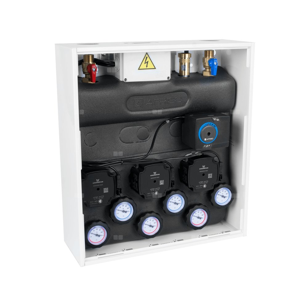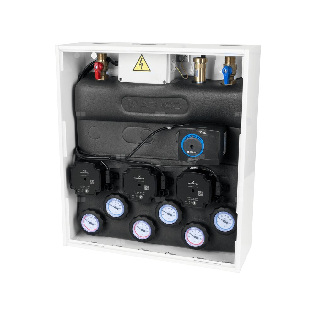Wyposażony w pompy Grundfos UPm³ oraz zawór obrotowy z siłownikiem ARM 141.