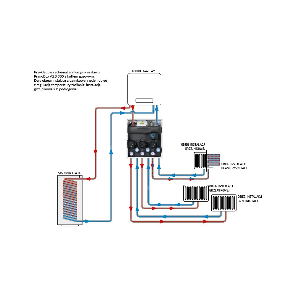 Opcjonalnie można połączyć go z zestawem separacyjnym **PrimoBox AHB** i stworzyć kolumnę grzewczą łączącą 2 źródła ciepła.