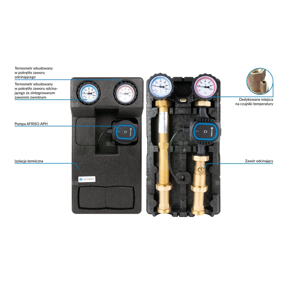 Grupa pompowa AFRISO PrimoTherm 180-1 AP DN 25 AP GZ x GW 1 1/2'' x 1'', z izolacją, z pompą obiegową AFRISO APH 361 25-7/180 mm