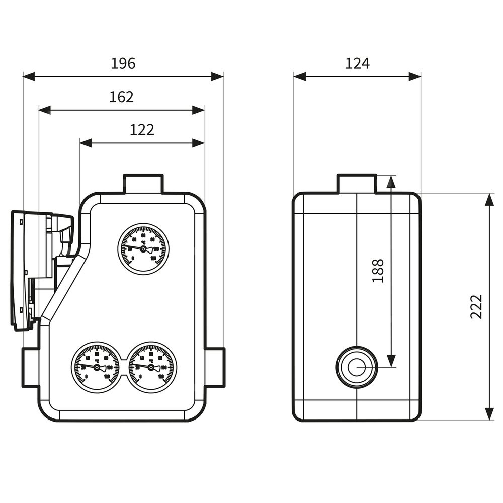 Wyposażona w niezbędne komponenty: trzy termometry do pomiaru temperatury, trzy zawory odcinające, izolacja termiczna.