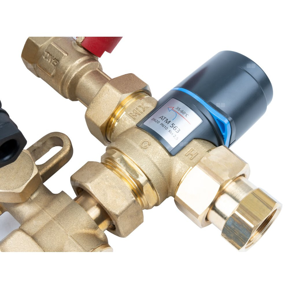 Grupa pompowa AFRISO WZS 75 GW 1'' x 3/4'', z zaworem mieszającym Kvs2.5, z zaworem termostatycznym, z izolacją