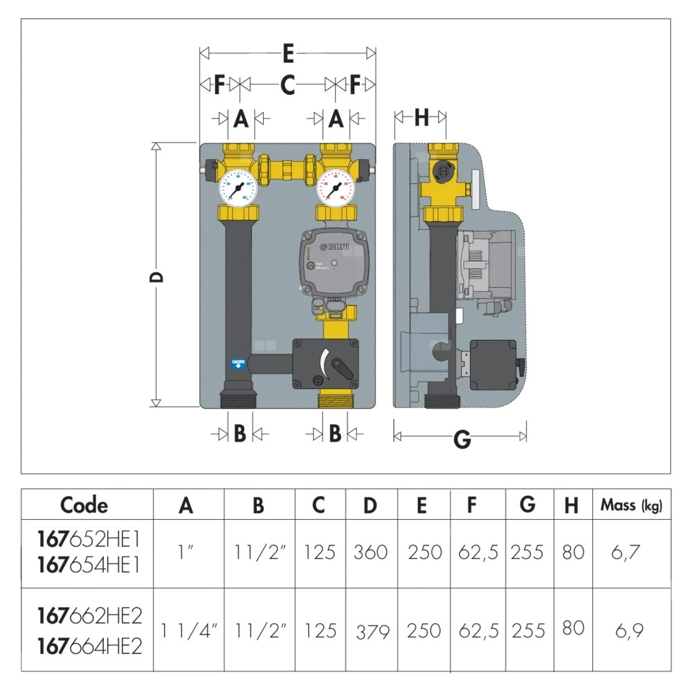 Grupa pompowa z zaworem mieszającym z siłownikiem dla instalacji centralnego ogrzewania.