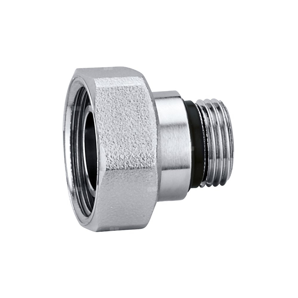 Półśrubunek Przyłącze: G 3/4" (ISO 228-1) GW, wlot, nakrętka mocująca. Przyłącze: G 3/8" A (ISO 228-1) GZ, wylot. Wykończenie: chromowane.